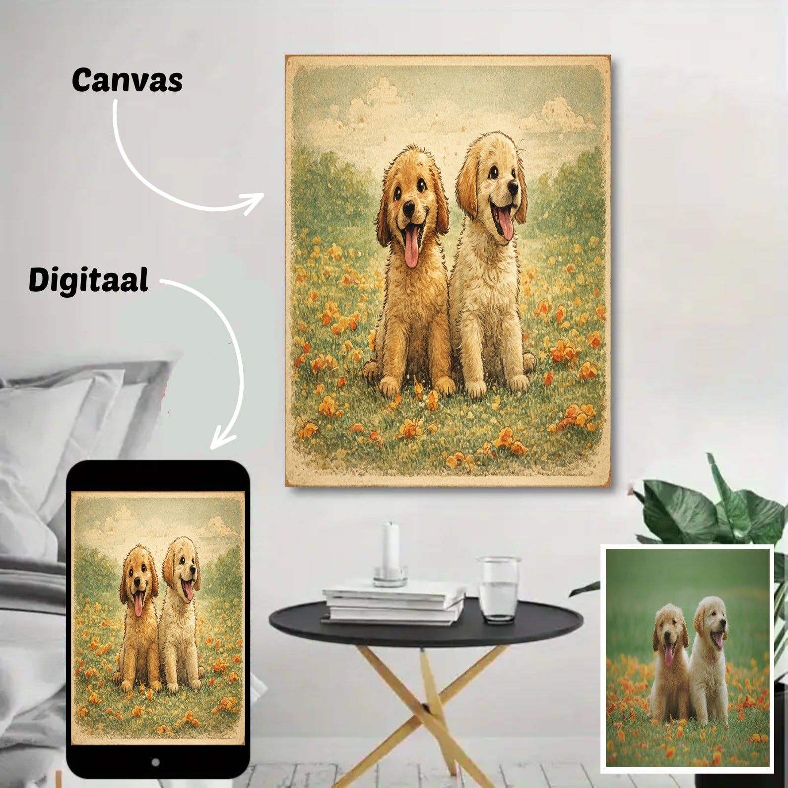We weten hoe leuk het is om je portret te ontvangen, daarom leveren we supersnel! Digitaal binnen 24 uur, canvas binnen 2–3 werkdagen.