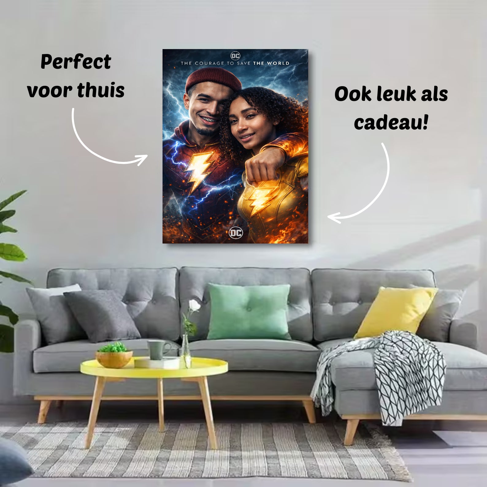 Onze foto’s op canvas zijn verkrijgbaar in verschillende formaten: 30×40 cm, 40×60 cm, 60×90 cm en 80×120 cm. Zo vind je altijd het formaat dat perfect bij jouw ruimte past — van een subtiel accent tot een opvallend groot cartoonportret aan de muur.