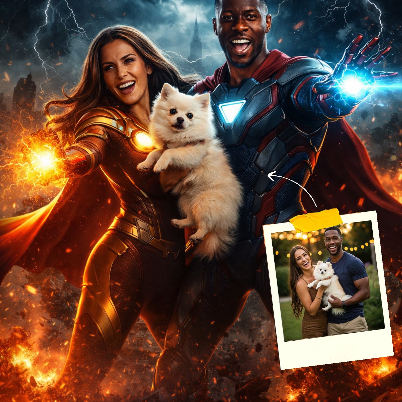 Elk cartoonportret wordt handgemaakt in Adobe Photoshop, met behulp van AI-tools en jouw foto als basis. Onze getalenteerde artiesten letten op elk detail, zodat jouw portret lijkt op de originele foto… maar dan met een unieke, vrolijke twist!
