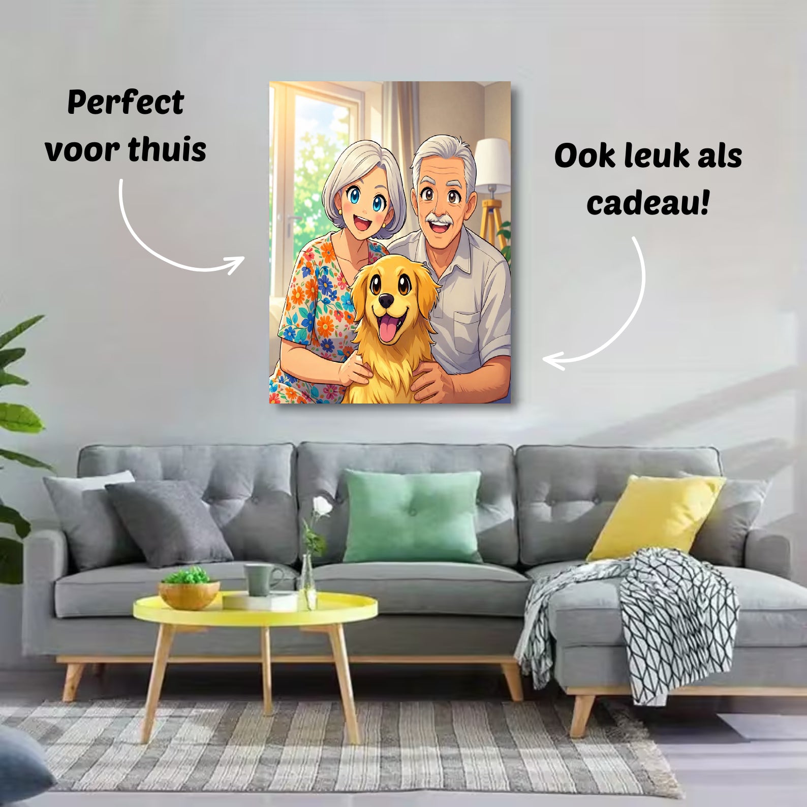 "Het portret is zó leuk geworden! Heel knap hoe goed ze ons hebben getekend. De details zijn perfect en het kwam super snel binnen!" – Iris