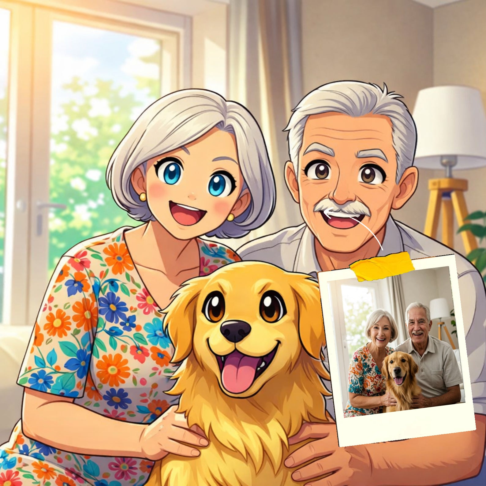 Elk cartoonportret wordt handgemaakt in Adobe Photoshop, met behulp van AI-tools en jouw foto als basis. Onze getalenteerde artiesten letten op elk detail, zodat jouw portret lijkt op de originele foto… maar dan met een unieke, vrolijke twist!