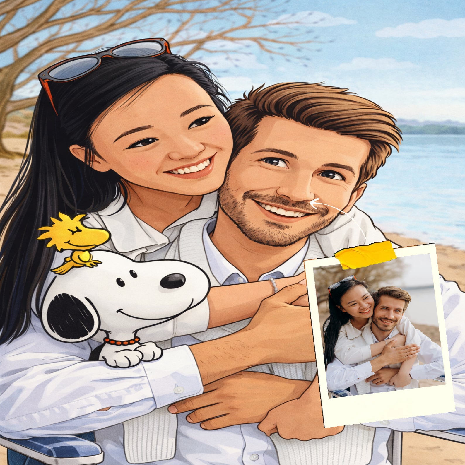 We kunnen van vrijwel elke foto met mensen en/of dieren een cartoonportret maken. Voor het mooiste resultaat: upload een scherpe, duidelijke foto met maximaal 7 personen en/of dieren. Zo wordt jouw cartoonportret zo precies en uniek mogelijk!