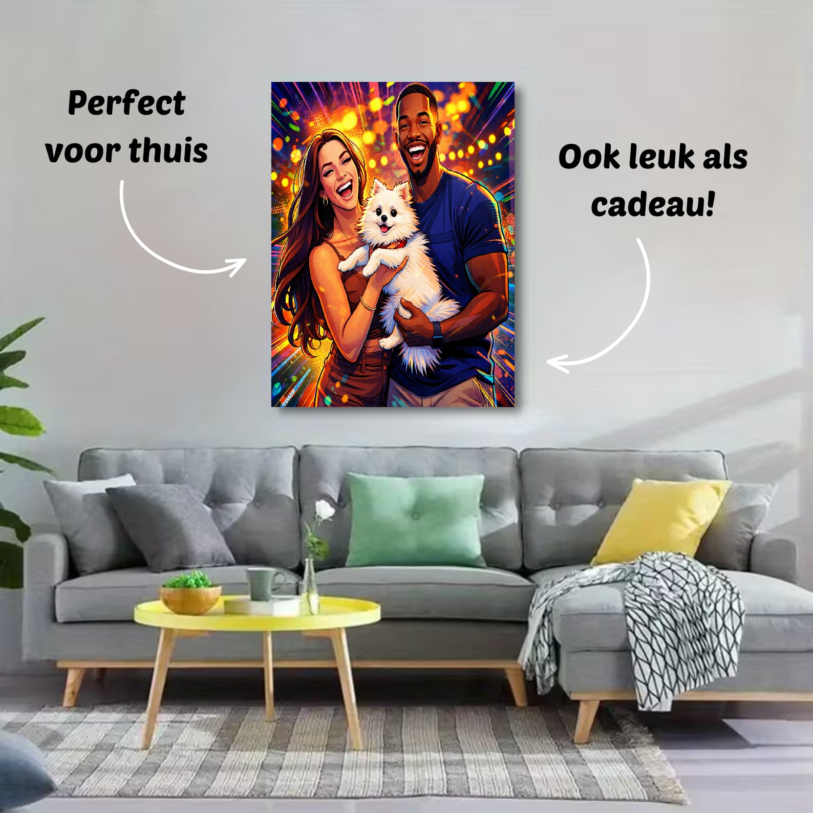 "Het portret is zó leuk geworden! Heel knap hoe goed ze ons hebben getekend. De details zijn perfect en het kwam super snel binnen!" – Iris