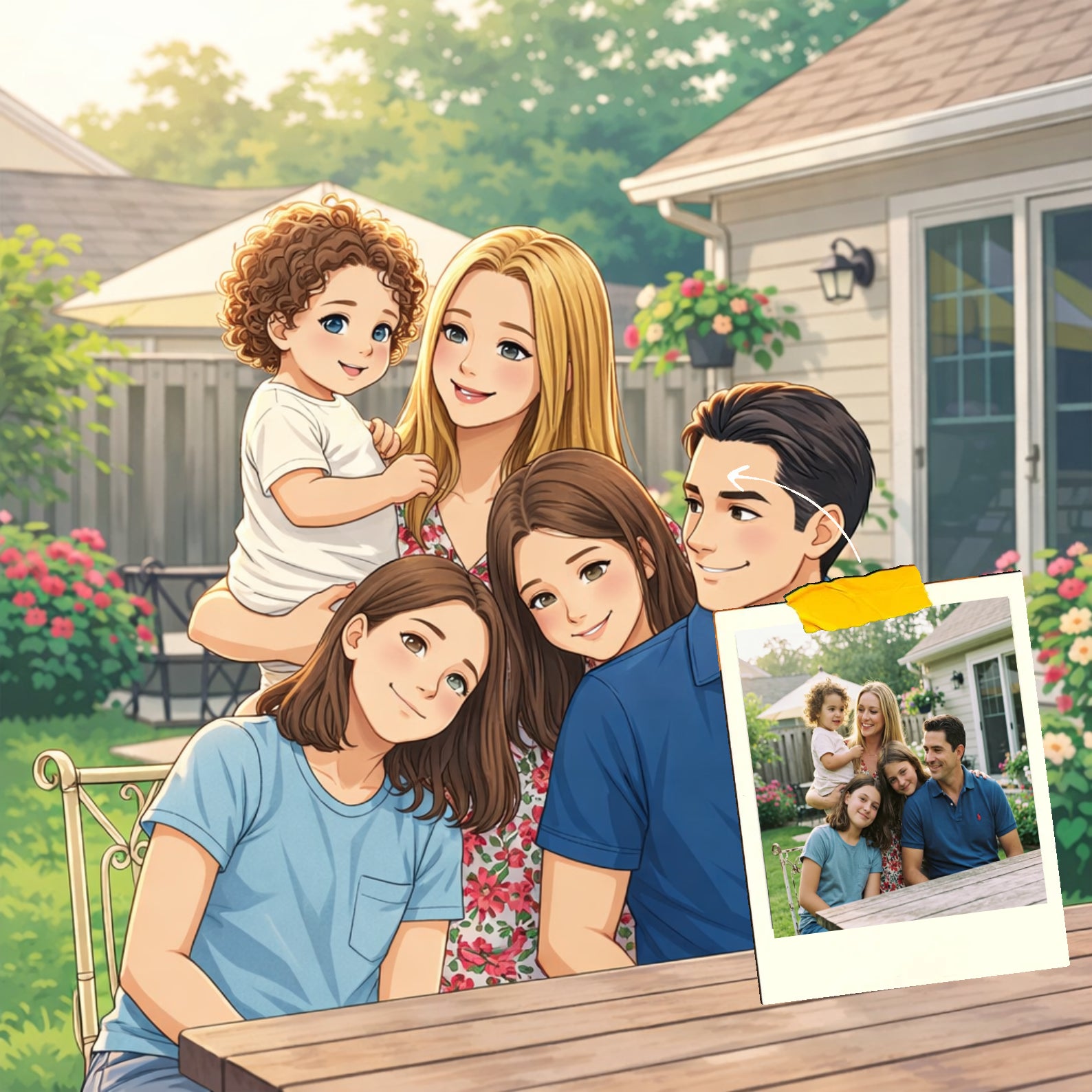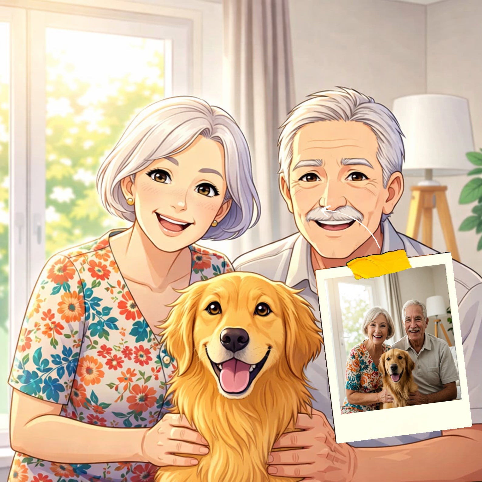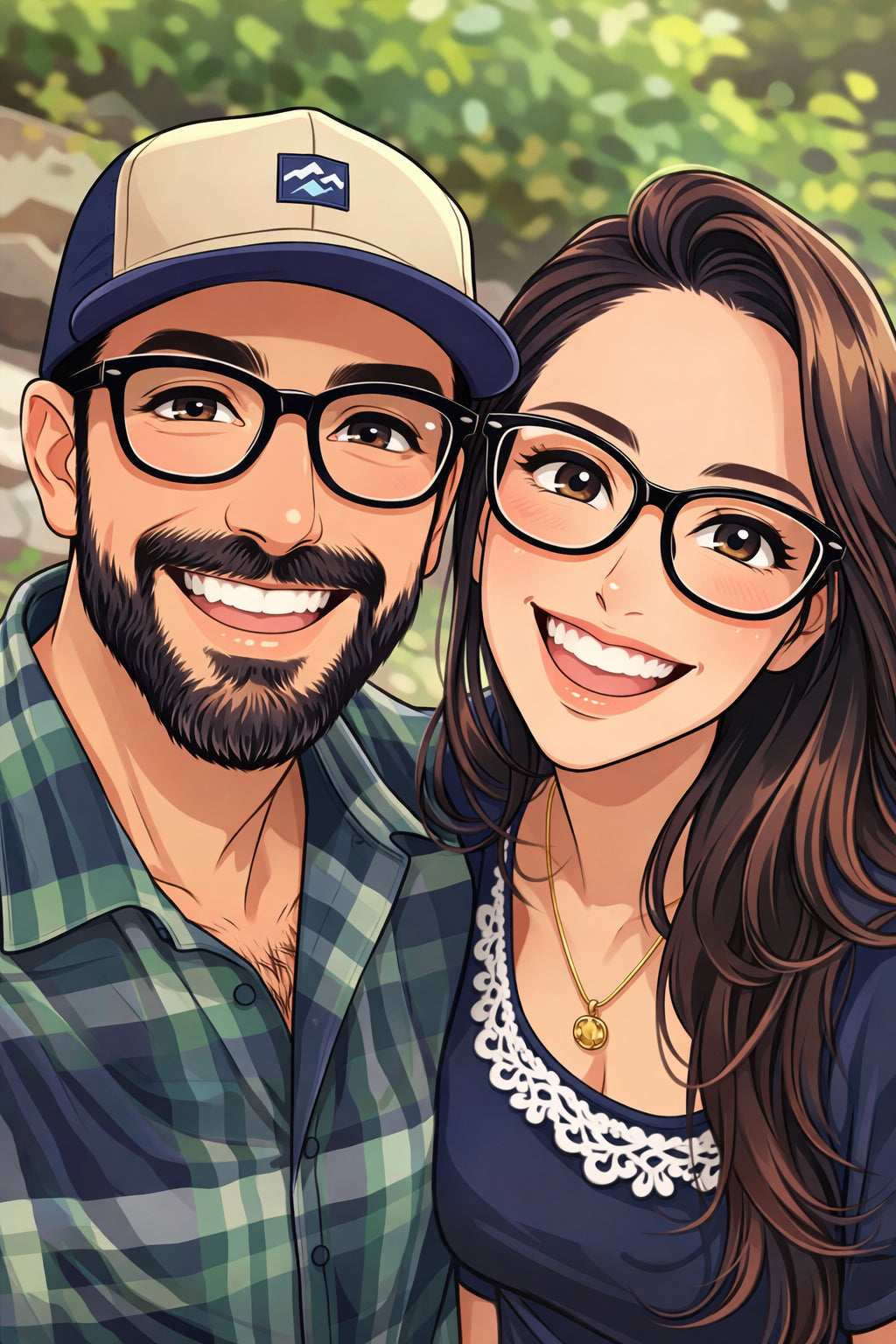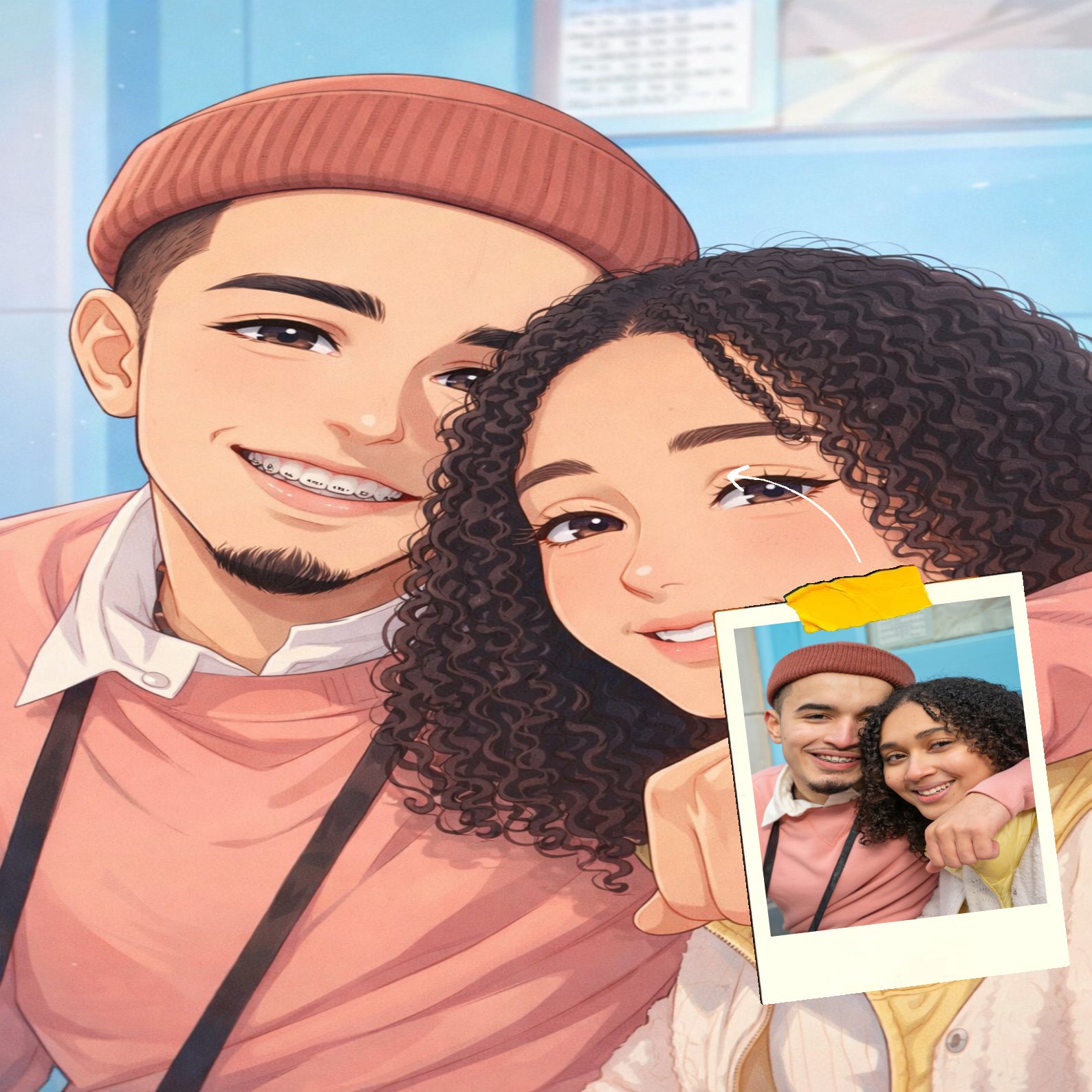Elk cartoonportret wordt handgemaakt in Adobe Photoshop, met behulp van AI-tools en jouw foto als basis. Onze getalenteerde artiesten letten op elk detail, zodat jouw portret lijkt op de originele foto… maar dan met een unieke, vrolijke twist!