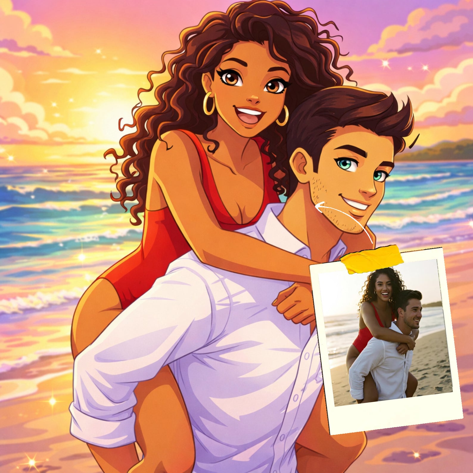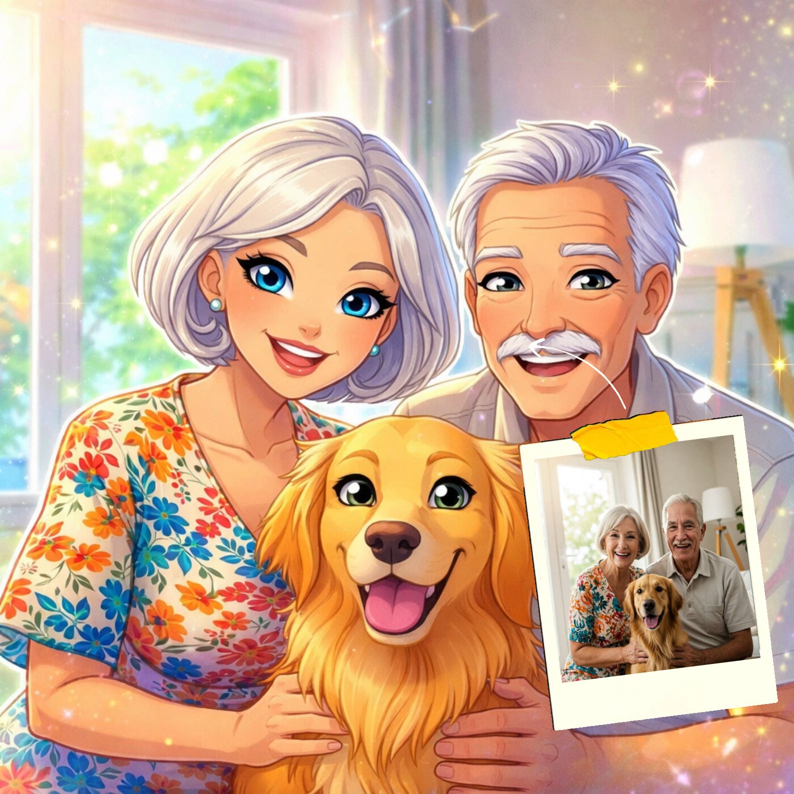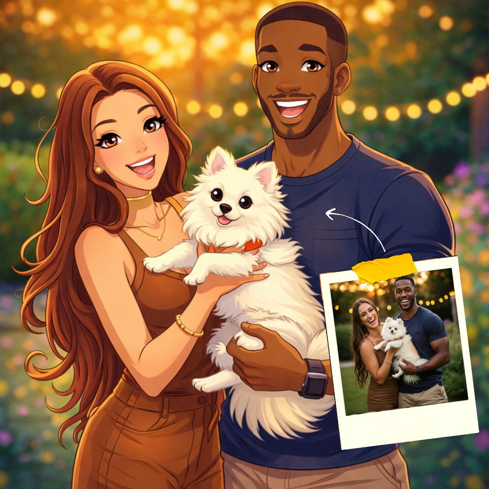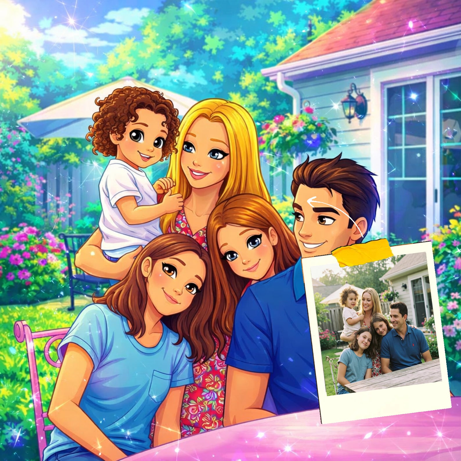 Elk cartoonportret wordt handgemaakt in Adobe Photoshop, met behulp van AI-tools en jouw foto als basis. Onze getalenteerde artiesten letten op elk detail, zodat jouw portret lijkt op de originele foto… maar dan met een unieke, vrolijke twist!