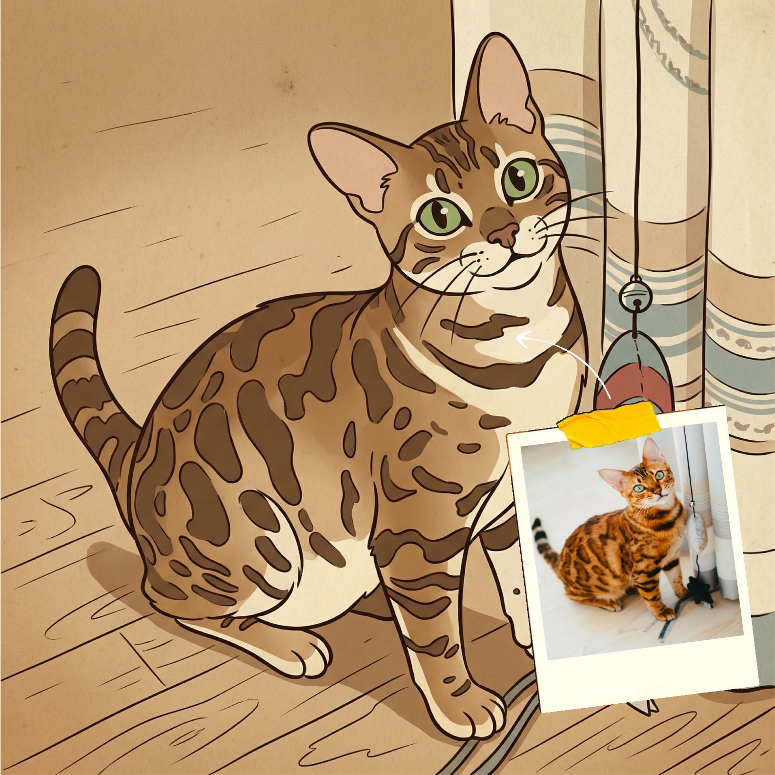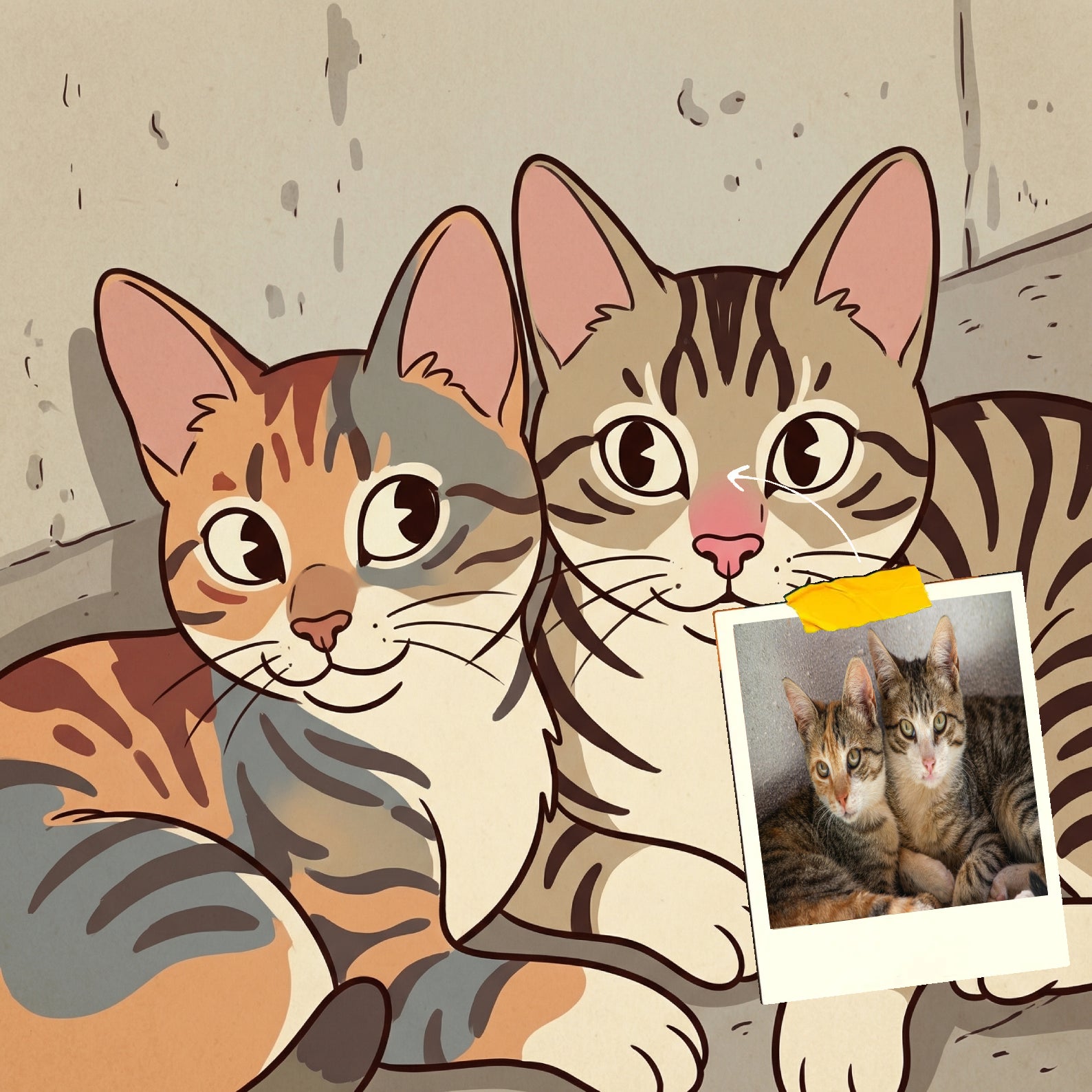 Elk cartoonportret wordt handgemaakt in Adobe Photoshop, met behulp van AI-tools en jouw foto als basis. Onze getalenteerde artiesten letten op elk detail, zodat jouw portret lijkt op de originele foto… maar dan met een unieke, vrolijke twist!