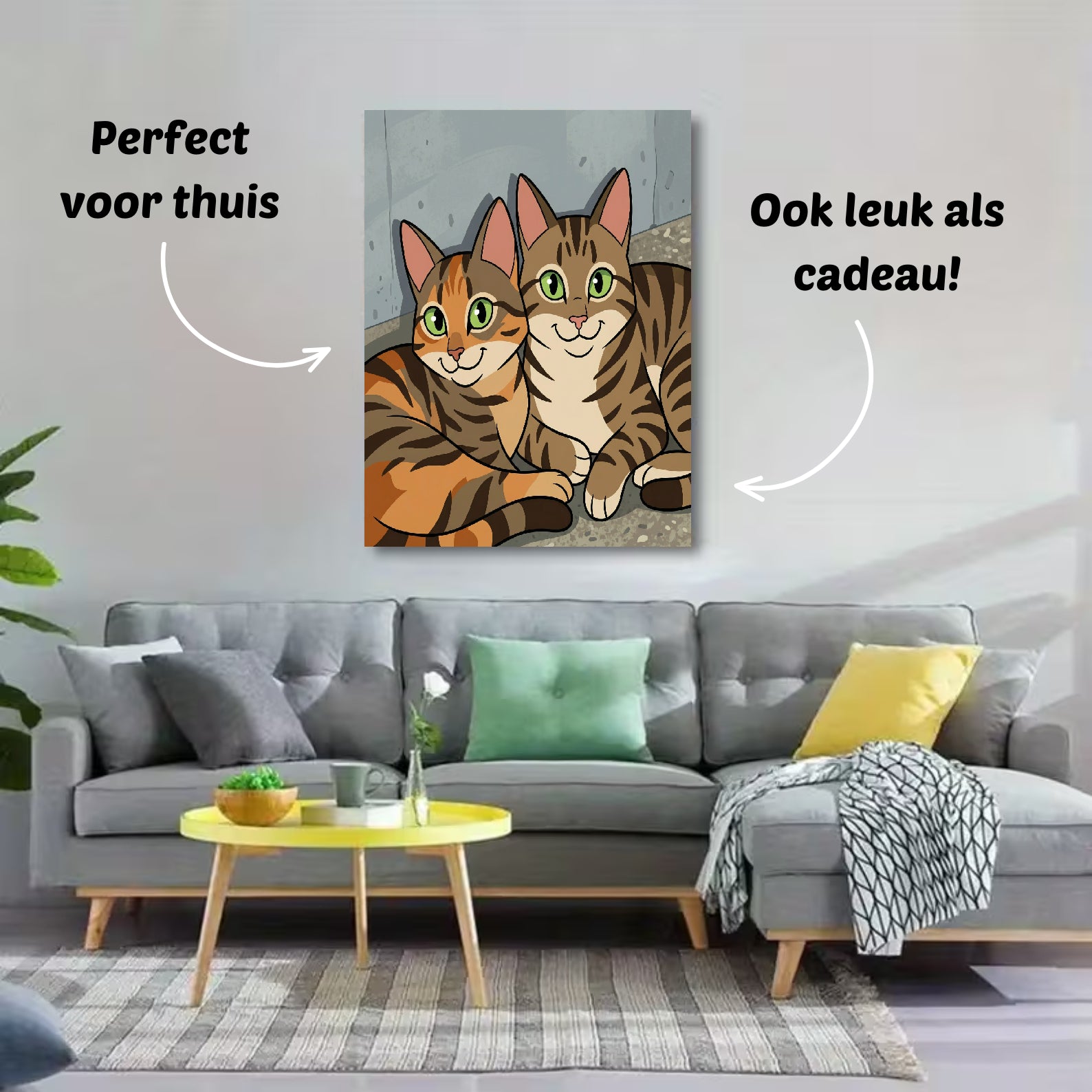 Onze foto’s op canvas zijn verkrijgbaar in verschillende formaten: 30×40 cm, 40×60 cm, 60×90 cm en 80×120 cm. Zo vind je altijd het formaat dat perfect bij jouw ruimte past — van een subtiel accent tot een opvallend groot cartoonportret aan de muur.