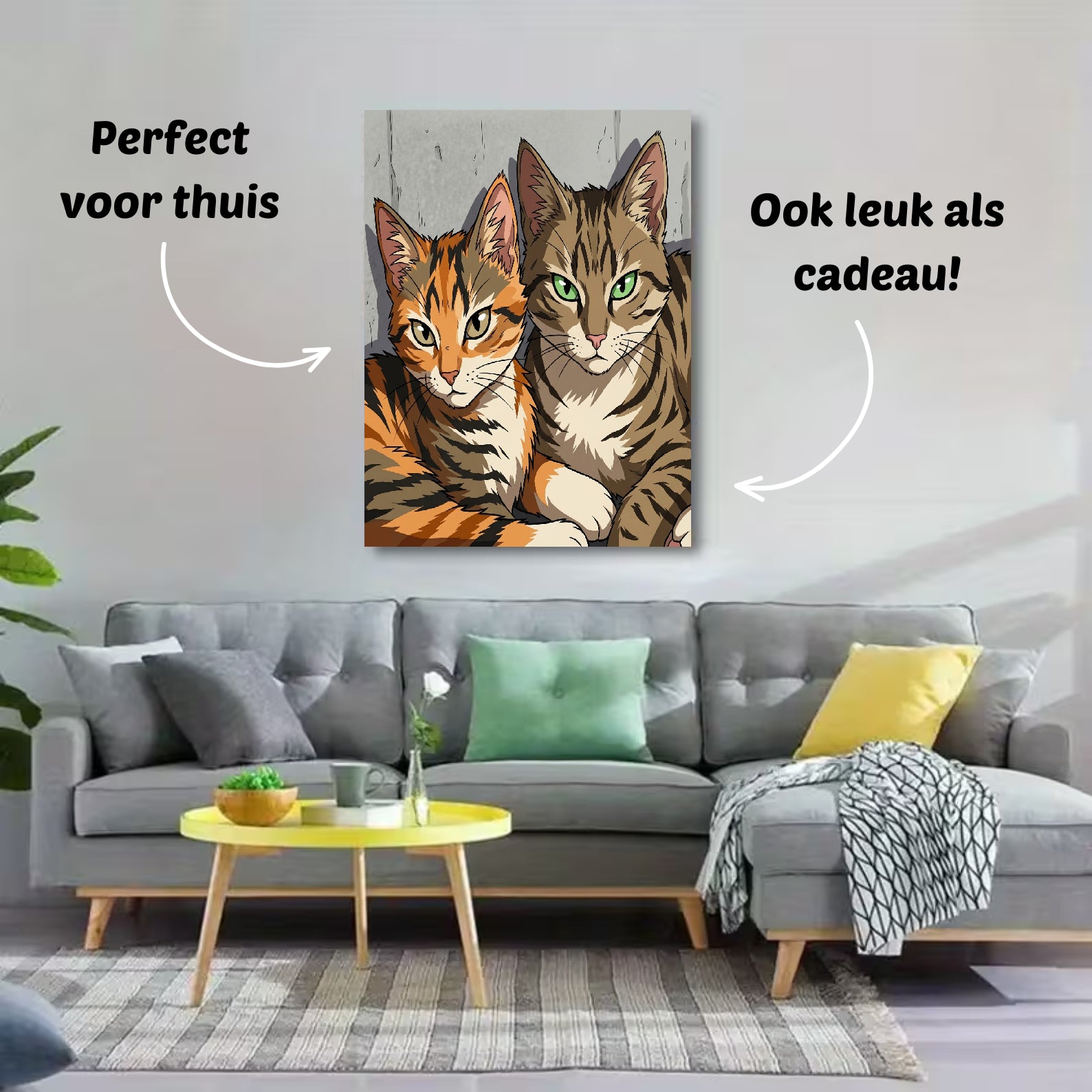 Onze foto’s op canvas zijn verkrijgbaar in verschillende formaten: 30×40 cm, 40×60 cm, 60×90 cm en 80×120 cm. Zo vind je altijd het formaat dat perfect bij jouw ruimte past — van een subtiel accent tot een opvallend groot cartoonportret aan de muur.
