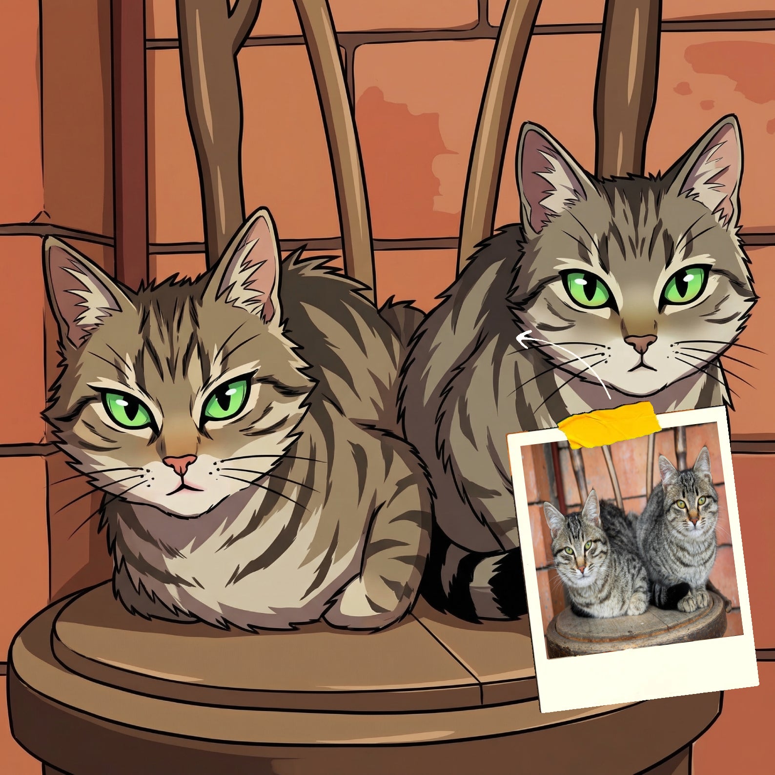 Elk cartoonportret wordt handgemaakt in Adobe Photoshop, met behulp van AI-tools en jouw foto als basis. Onze getalenteerde artiesten letten op elk detail, zodat jouw portret lijkt op de originele foto… maar dan met een unieke, vrolijke twist!