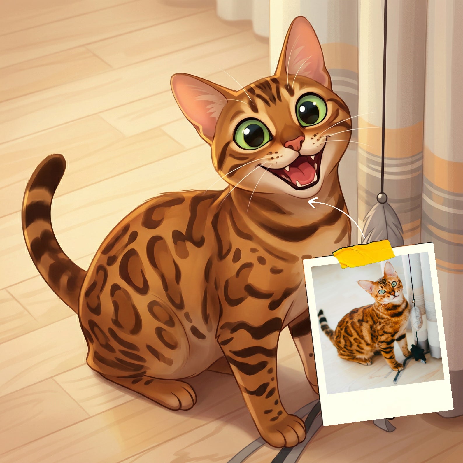 Elk cartoonportret wordt handgemaakt in Adobe Photoshop, met behulp van AI-tools en jouw foto als basis. Onze getalenteerde artiesten letten op elk detail, zodat jouw portret lijkt op de originele foto… maar dan met een unieke, vrolijke twist!