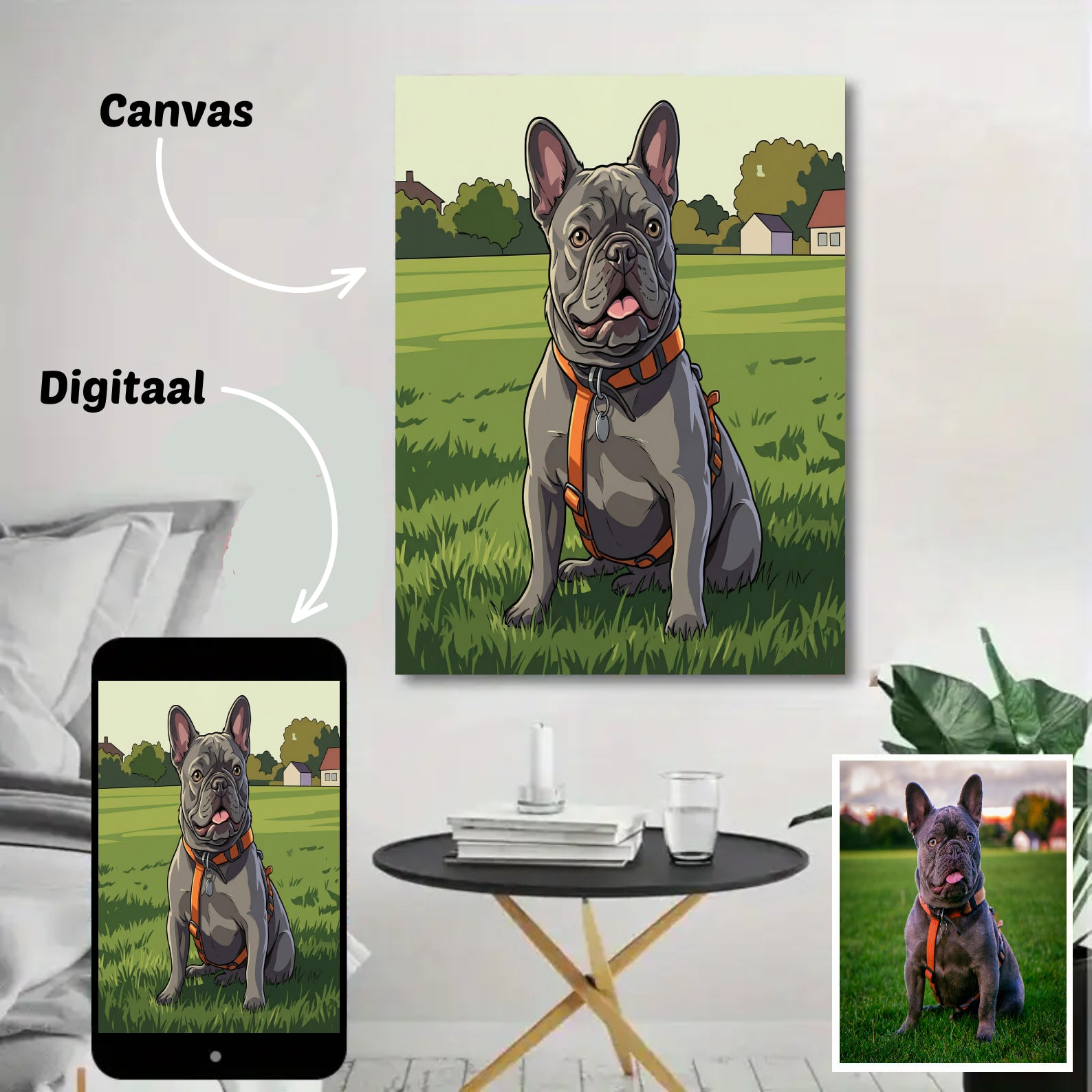 Upload eenvoudig een hondenfoto en ontvang binnen enkele dagen een prachtig resultaat.