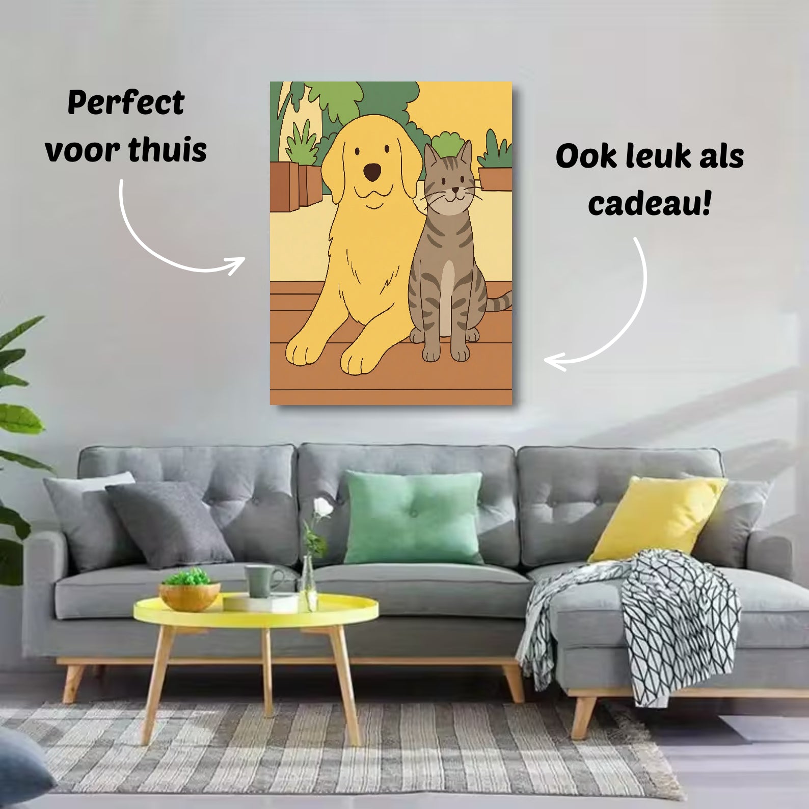 Onze foto’s op canvas zijn verkrijgbaar in verschillende formaten: 30×40 cm, 40×60 cm, 60×90 cm en 80×120 cm. Zo vind je altijd het formaat dat perfect bij jouw ruimte past — van een subtiel accent tot een opvallend groot cartoonportret aan de muur.