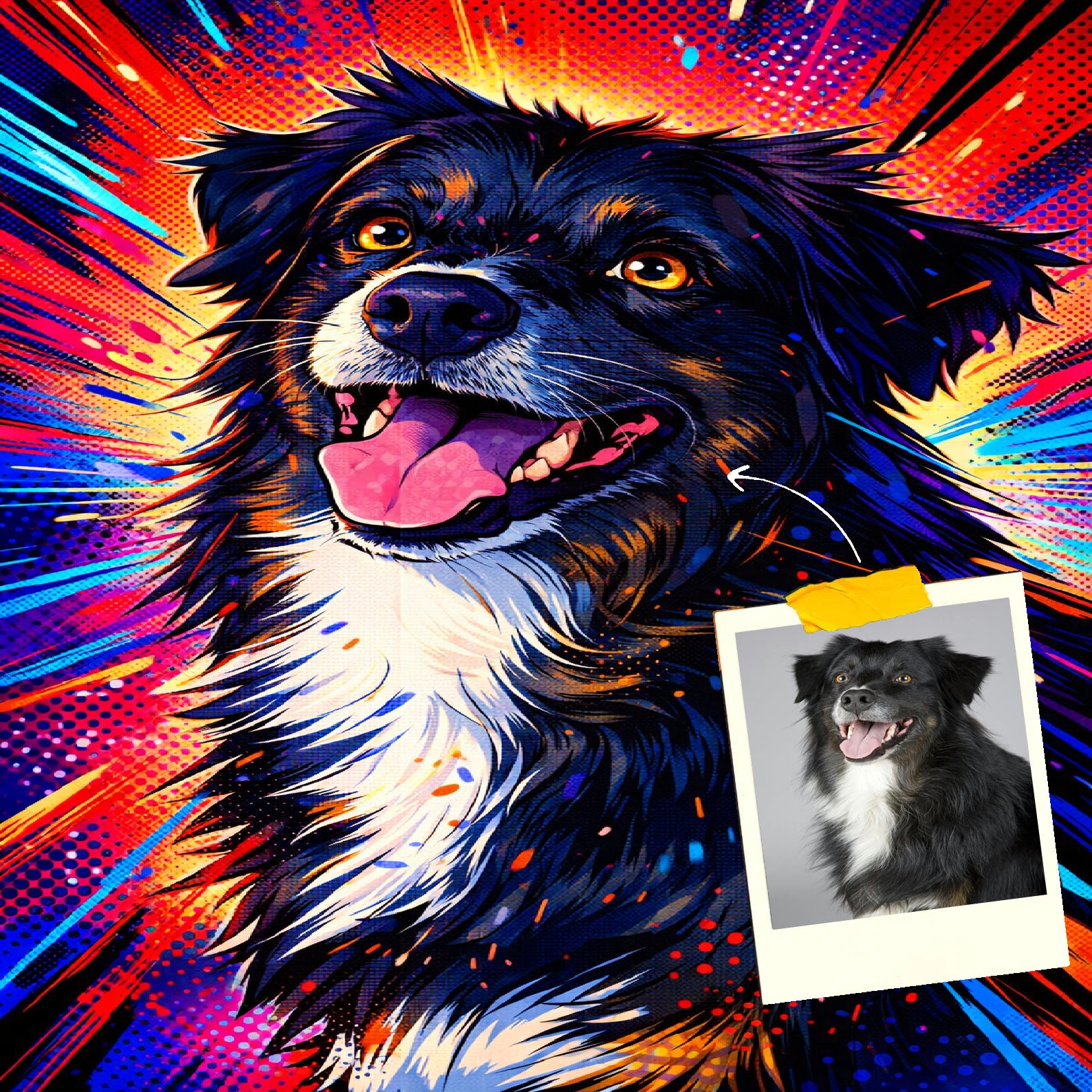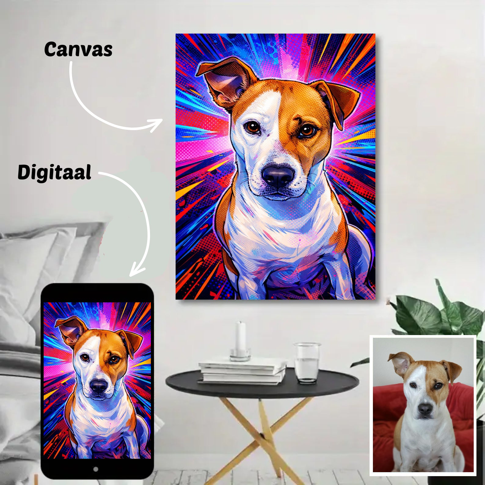 Upload eenvoudig een hondenfoto en ontvang binnen enkele dagen een prachtig resultaat.