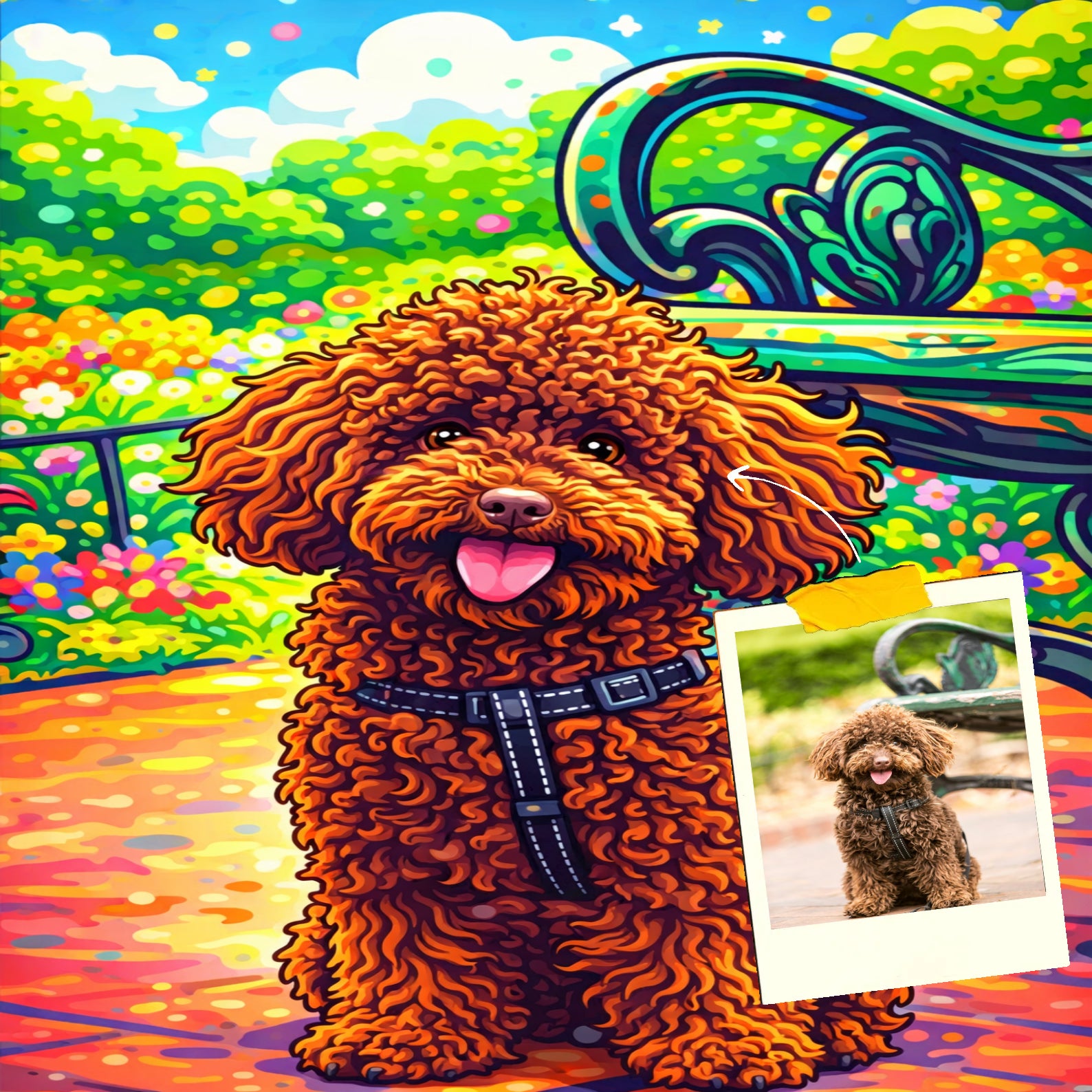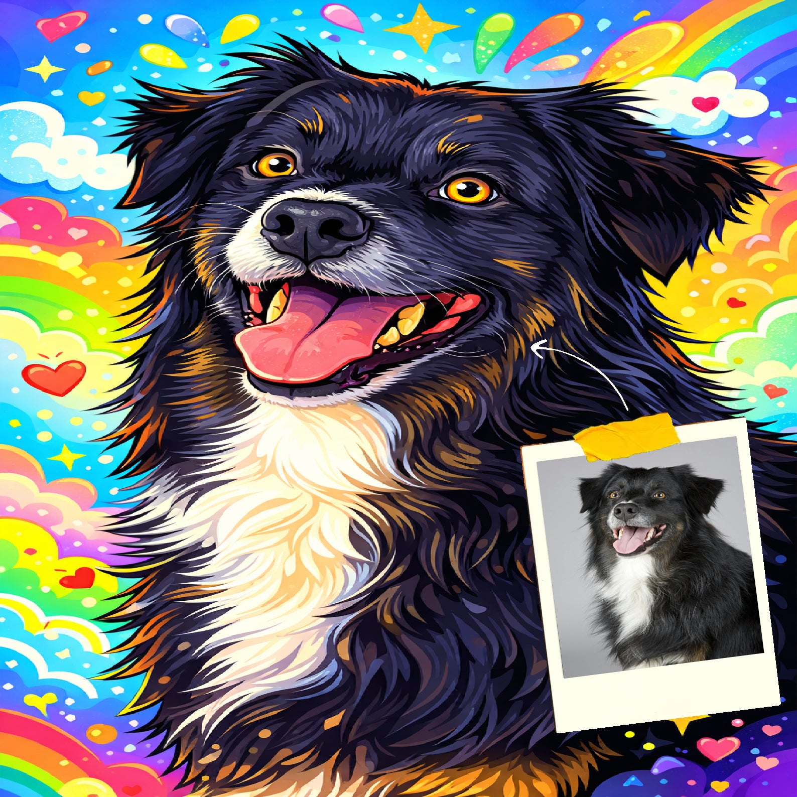 Upload eenvoudig een hondenfoto en ontvang binnen enkele dagen een prachtig resultaat.