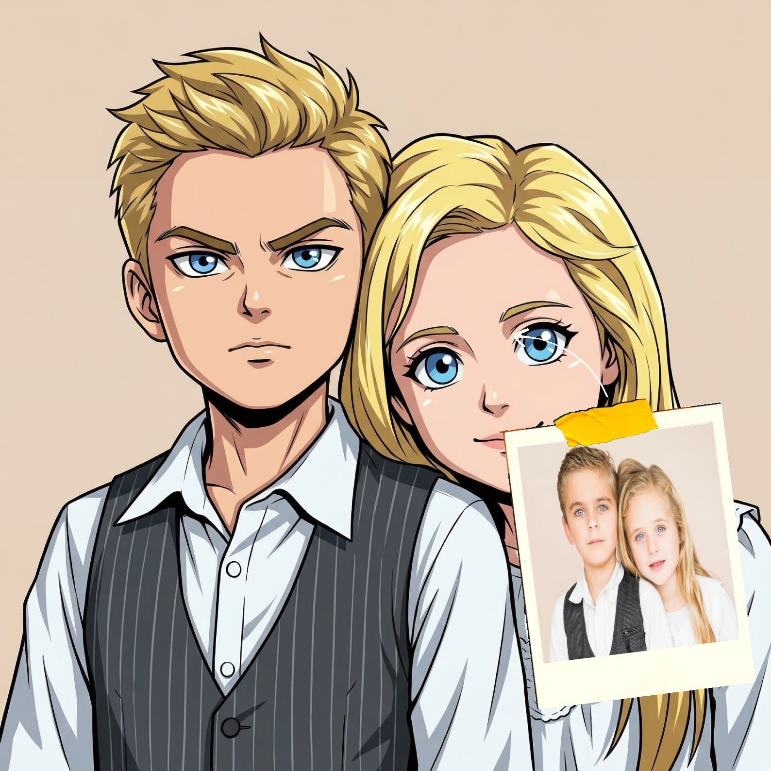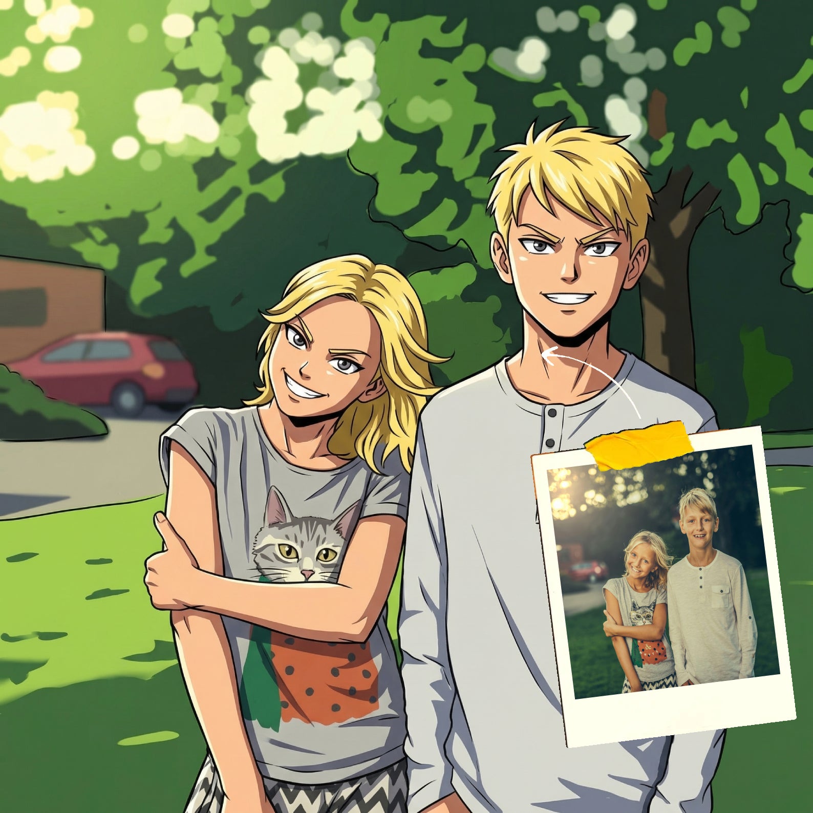 Elk cartoonportret wordt handgemaakt in Adobe Photoshop, met behulp van AI-tools en jouw foto als basis. Onze getalenteerde artiesten letten op elk detail, zodat jouw portret lijkt op de originele foto… maar dan met een unieke, vrolijke twist!