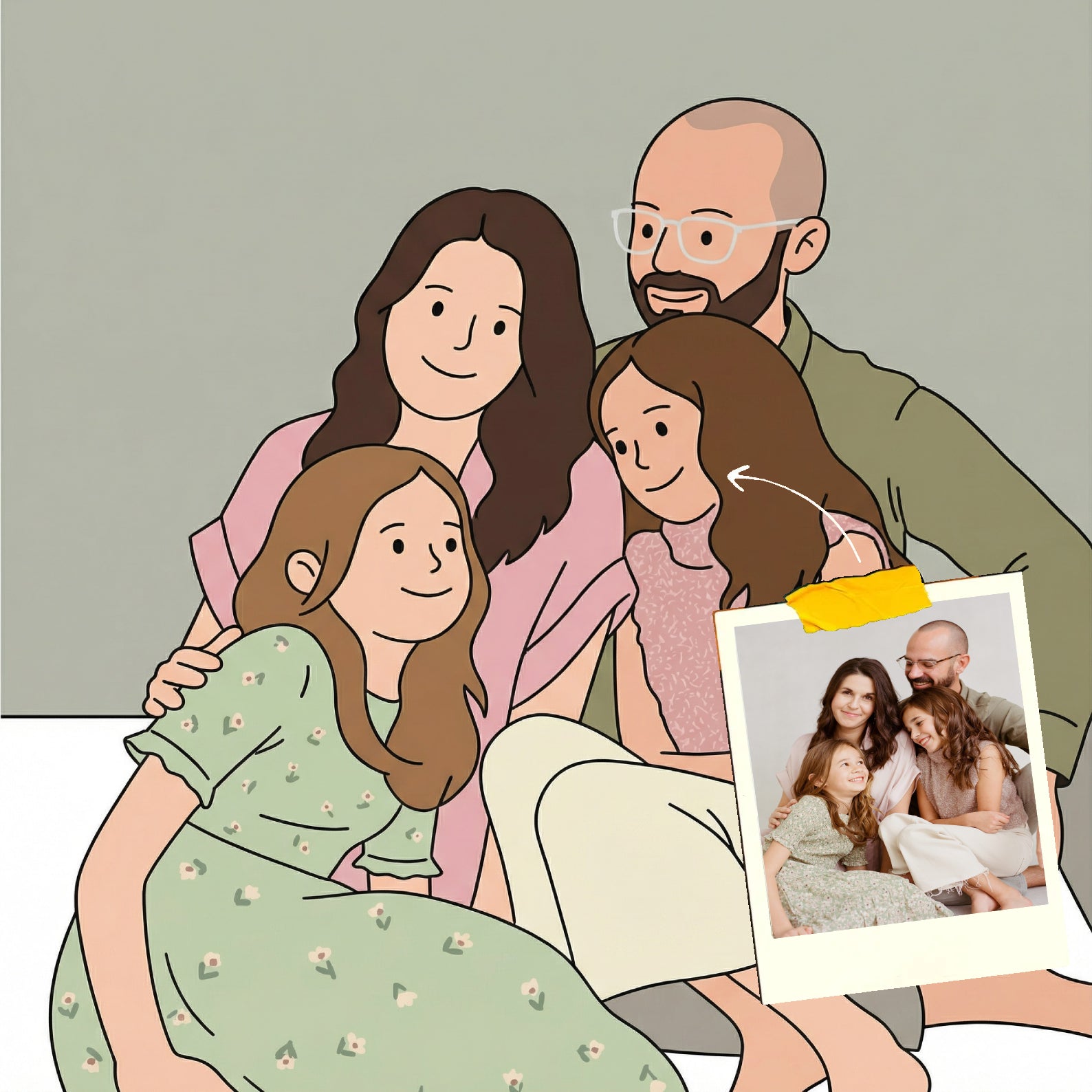 "Het portret is zó leuk geworden! Heel knap hoe goed ze ons hebben getekend. De details zijn perfect en het kwam super snel binnen!" – Iris