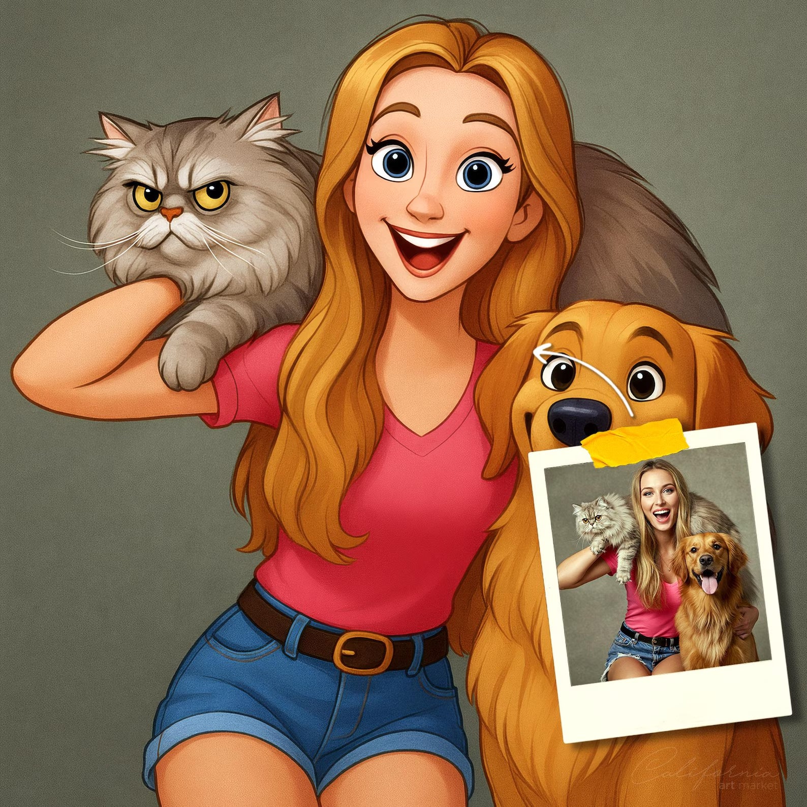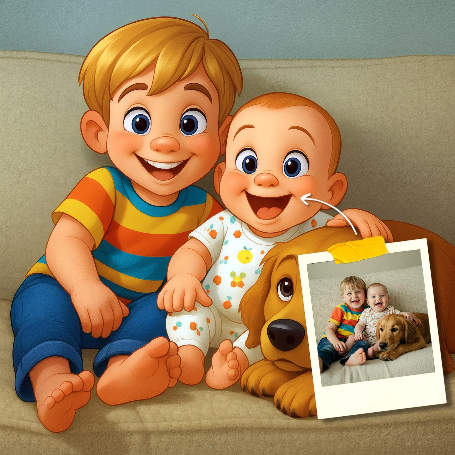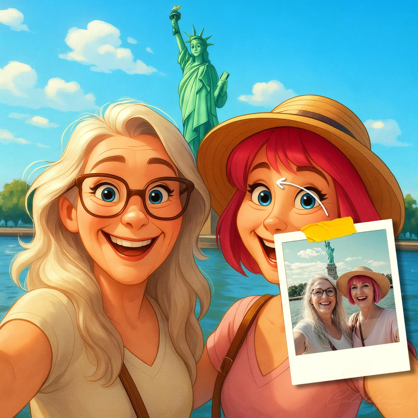 Elk cartoonportret wordt handgemaakt in Adobe Photoshop, met behulp van AI-tools en jouw foto als basis. Onze getalenteerde artiesten letten op elk detail, zodat jouw portret lijkt op de originele foto… maar dan met een unieke, vrolijke twist!