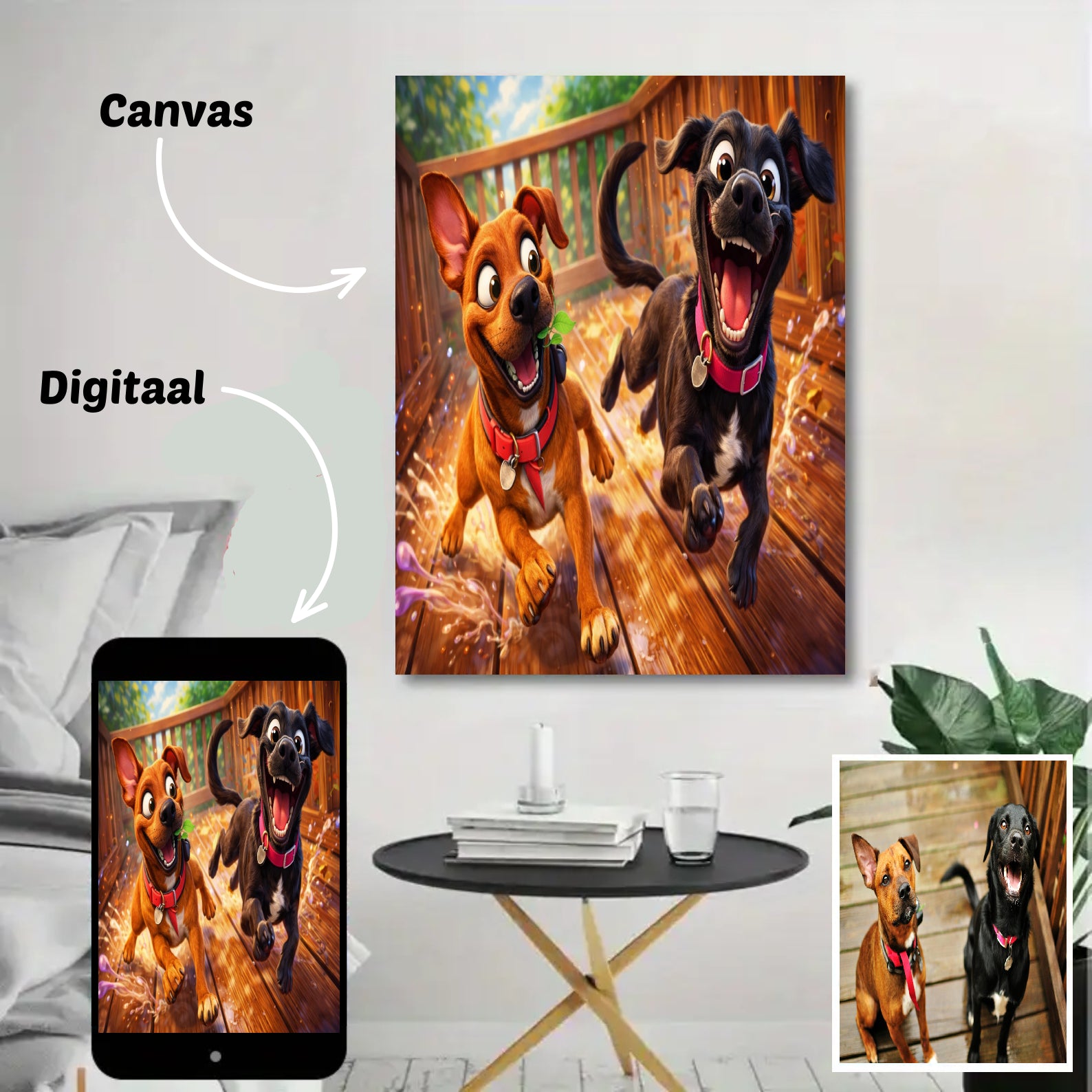 Upload eenvoudig een hondenfoto en ontvang binnen enkele dagen een prachtig resultaat.