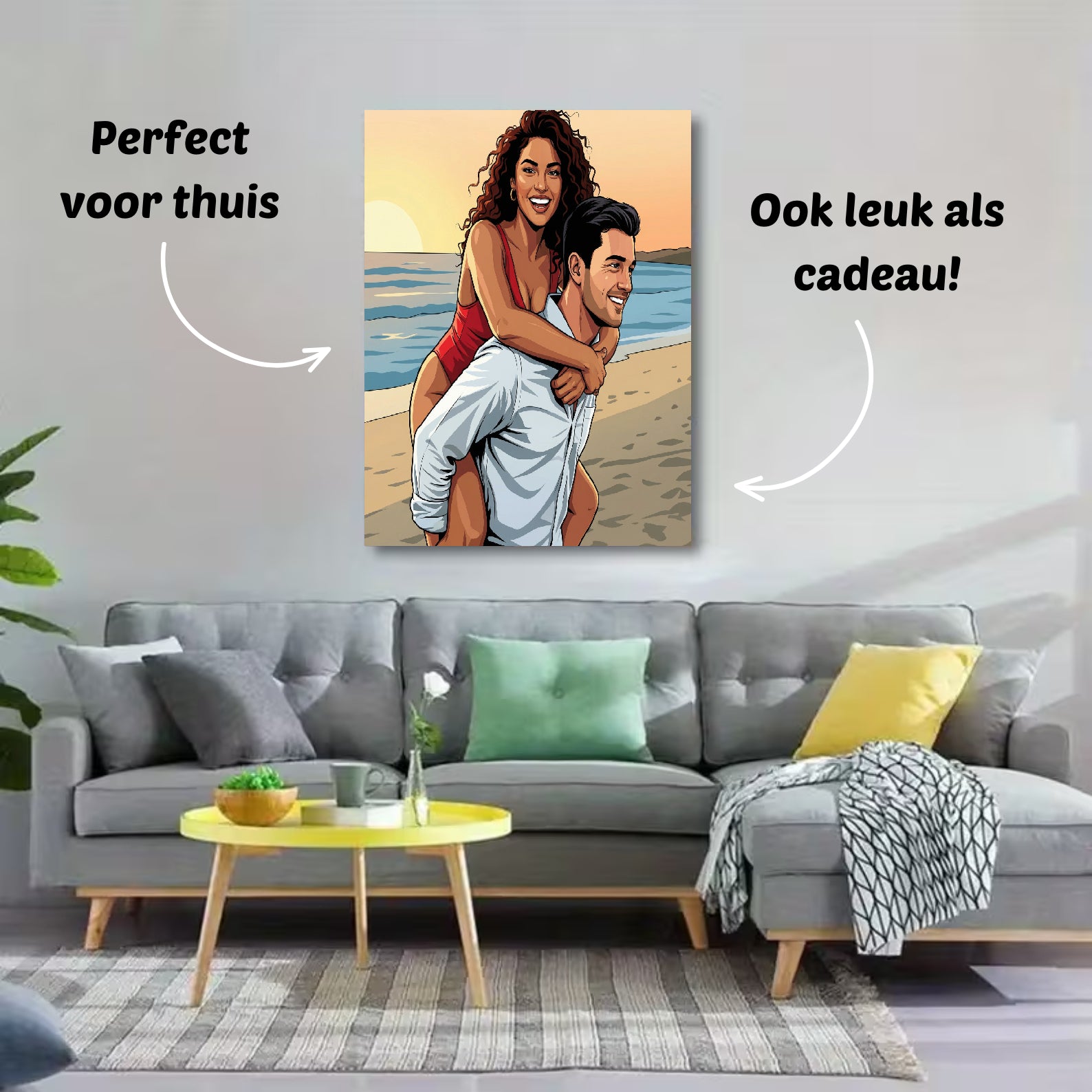 Upload eenvoudig een foto van jullie samen en ontvang binnen enkele dagen een prachtig resultaat.