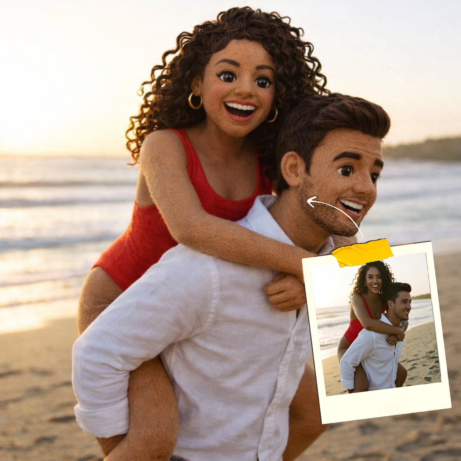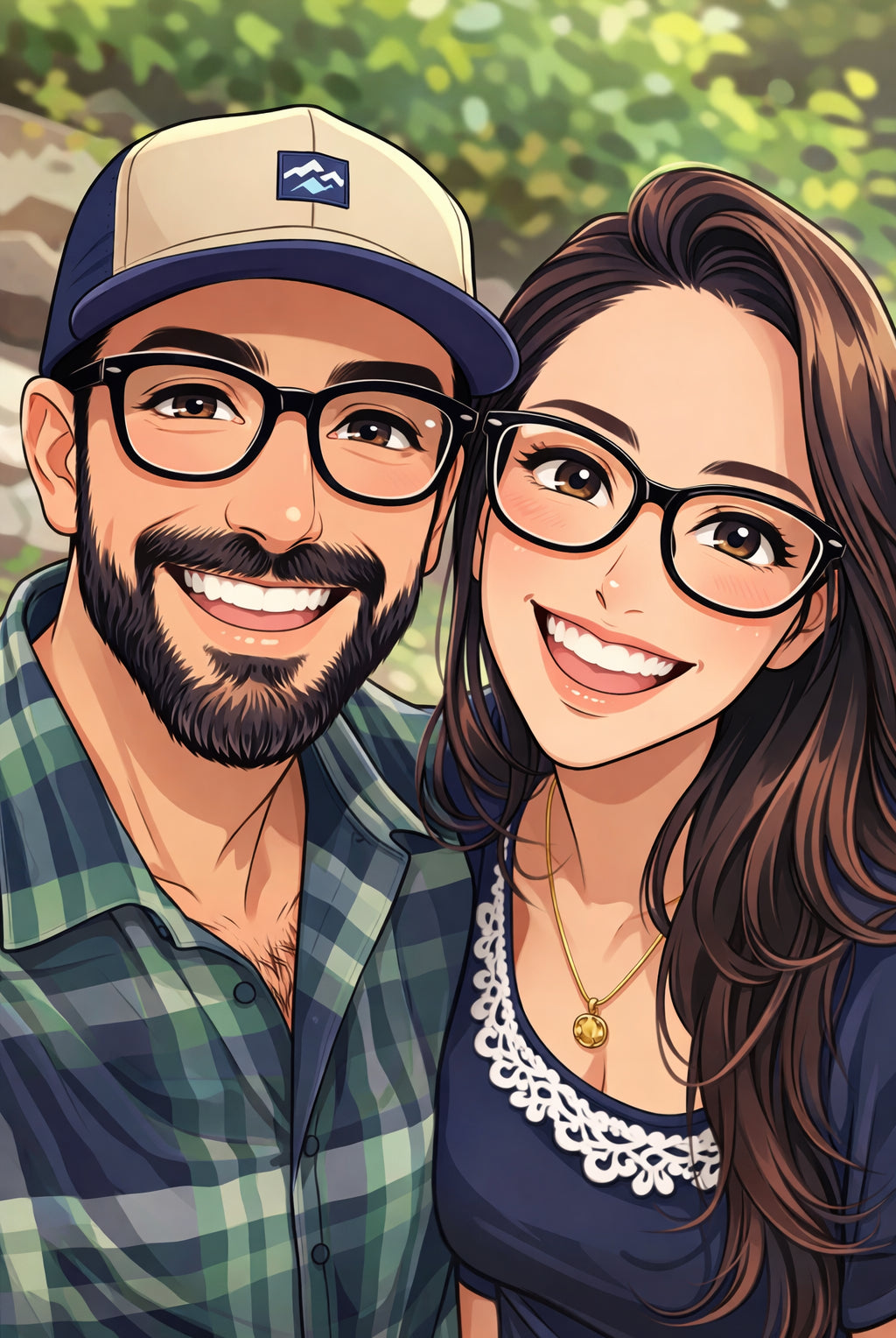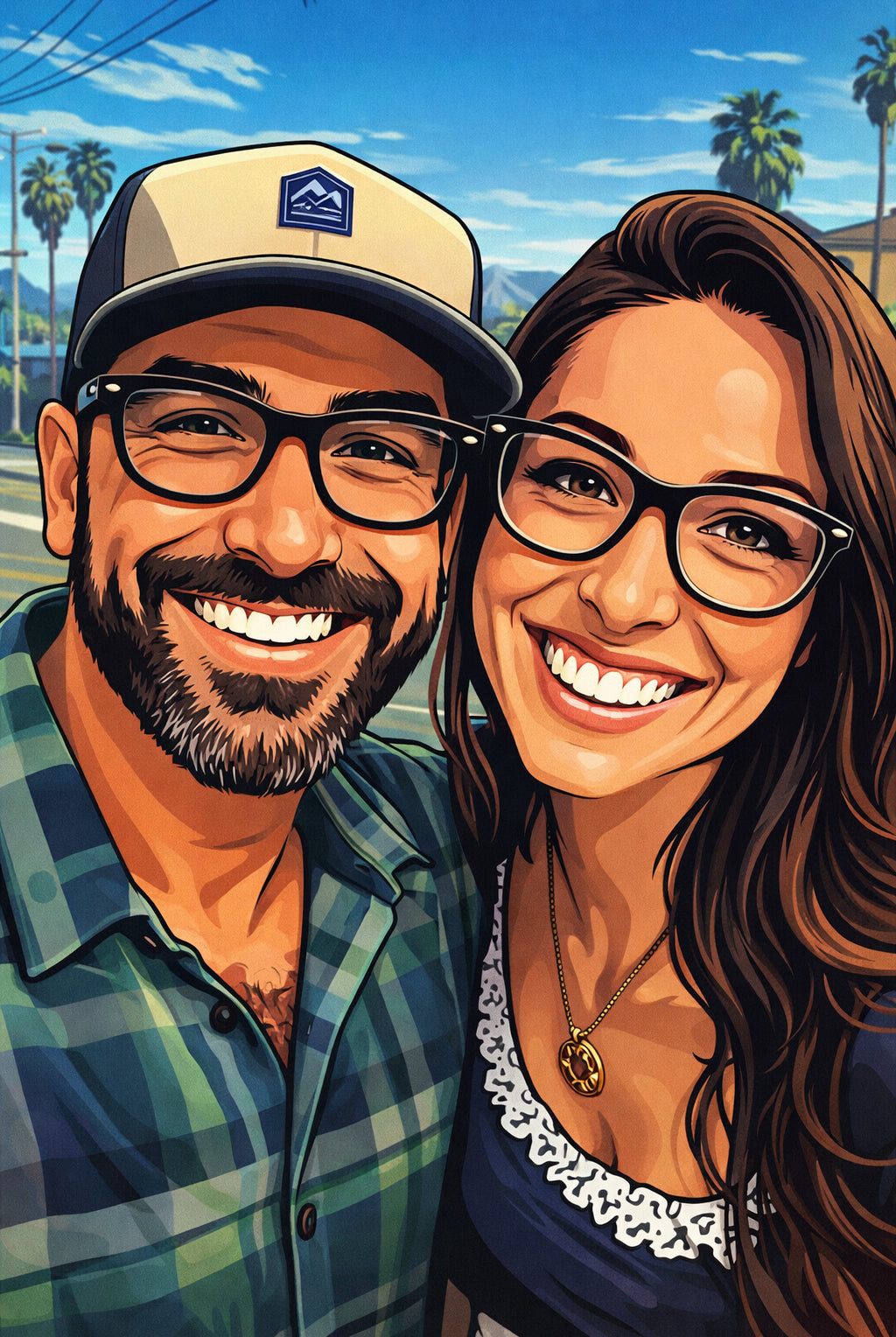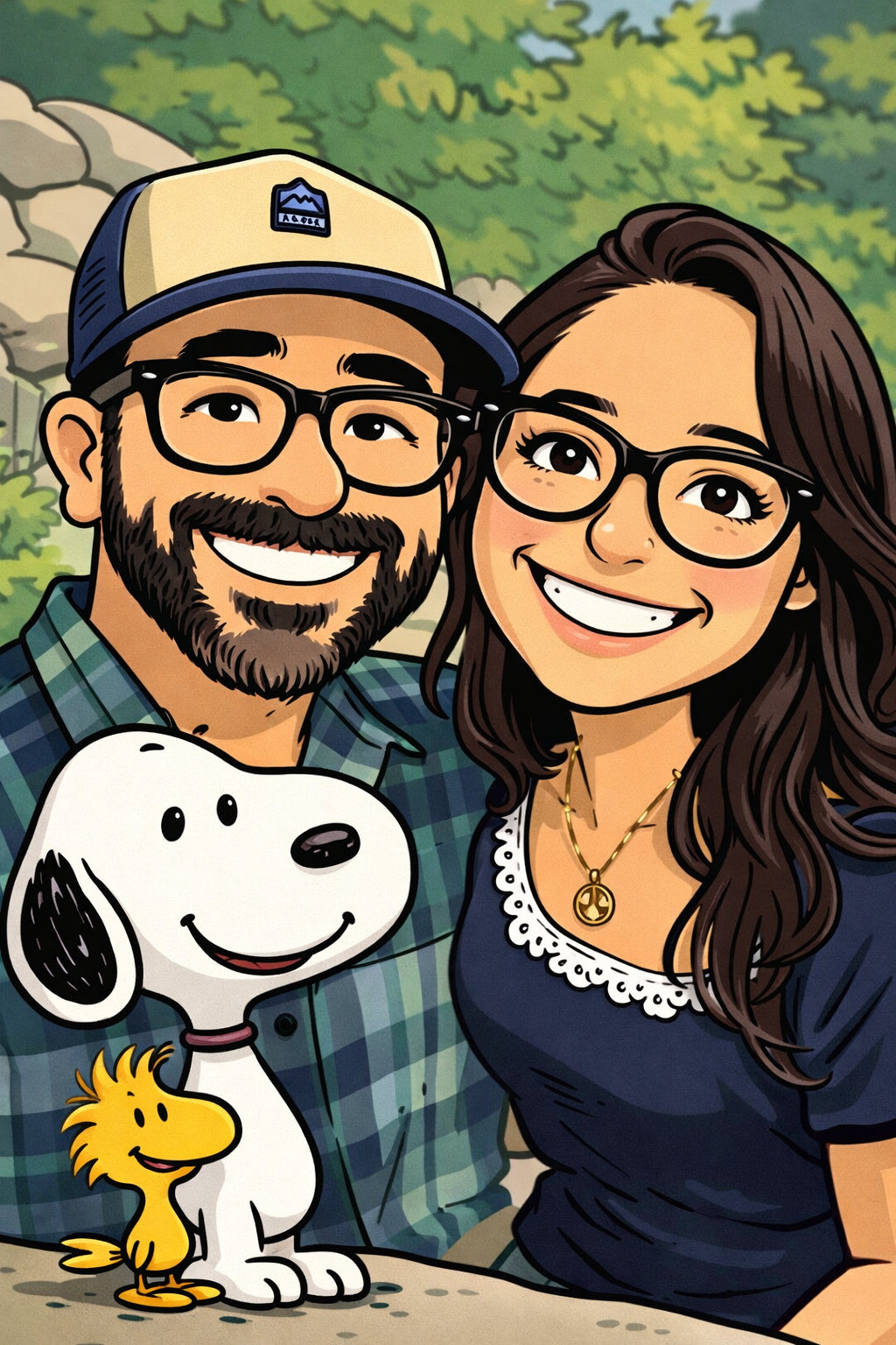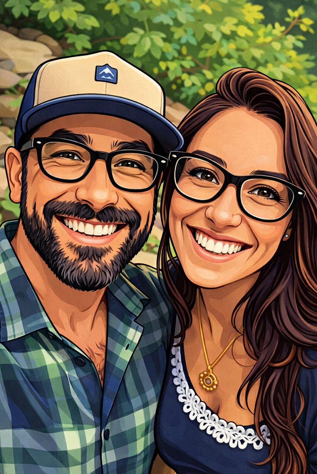 Elk cartoonportret wordt handgemaakt in Adobe Photoshop, met behulp van AI-tools en jouw foto als basis. Onze getalenteerde artiesten letten op elk detail, zodat jouw portret lijkt op de originele foto… maar dan met een unieke, vrolijke twist!